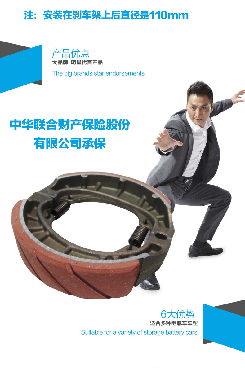 Electric vehicle wear-resistant drum brake pad 110 brake hoof cg125 gy6125 pedal electric car front and rear universal