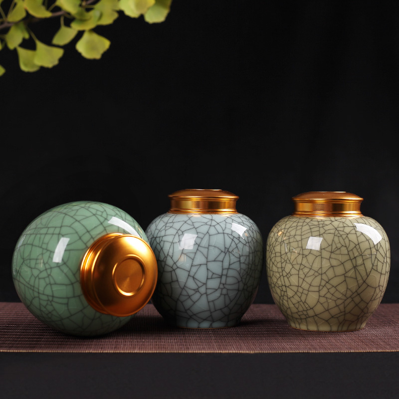 Pro-prosody blue porcelain Chinese large number apple tea leaf jar ceramic sealed tea jar Home Depository tea jar Ko Kilo open sheet