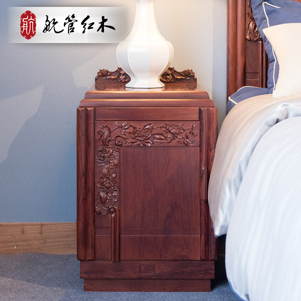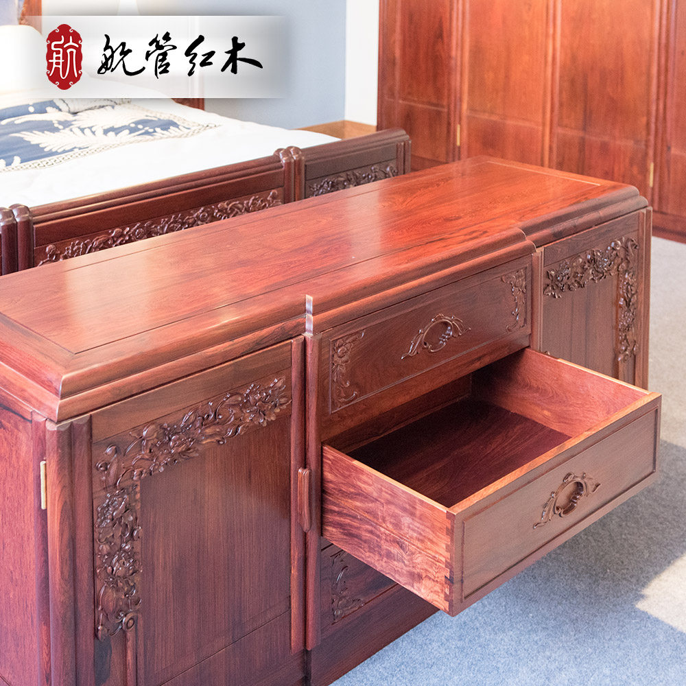 (Air traffic mahogany) Bali rosewood (red rosewood) peony flower bedroom furniture set of five