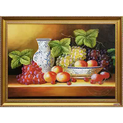 Oil painting classical still life modern hand-painted decorative painting dining room hanging painting pure hand-made murals European grape fruit vase
