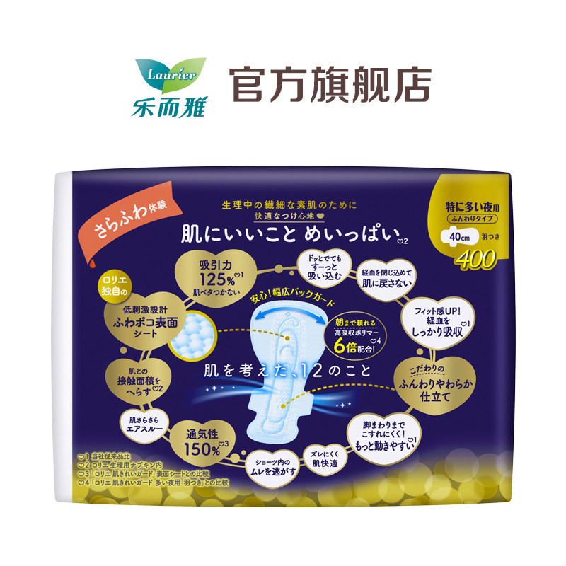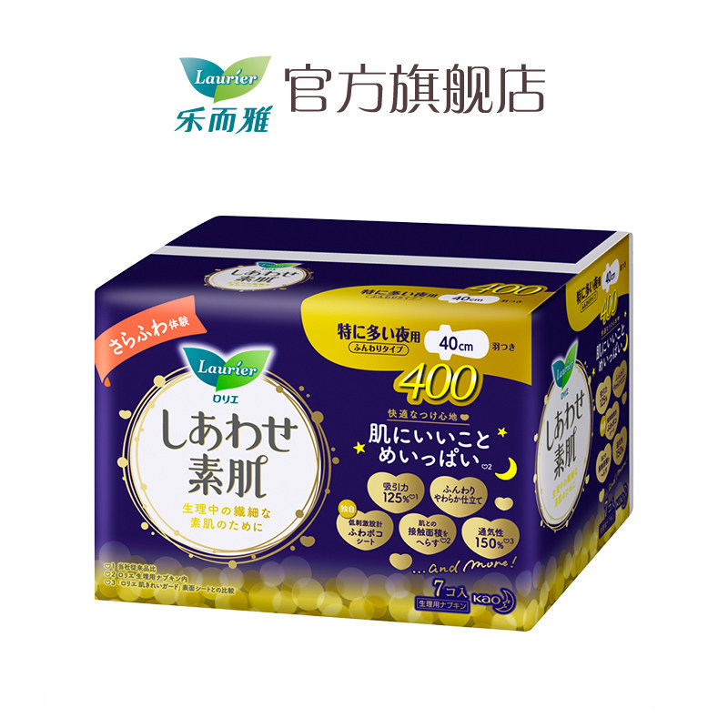 (89 yuan to choose 3 pieces) Kao sanitary napkin Leerya imported F cotton soft night use aunt towel 40cm 7 pieces