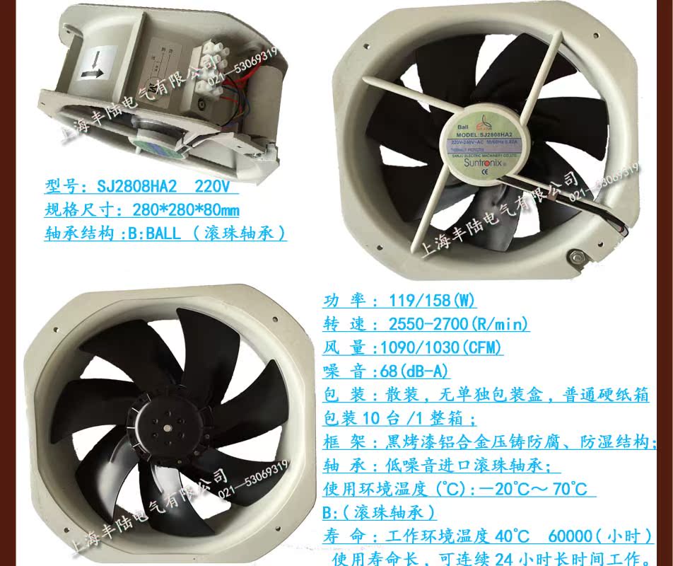 Brand new Taiwan Three-giant SJ2808HA2B AC220V dual ball bearing axial flow fan full metal heat dissipation fan