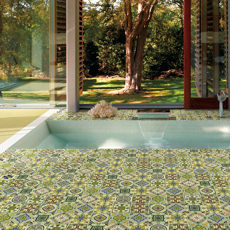 European-style ceramic florets Powder room kitchen hand-painted florets Stair steps Wave line waist line 100