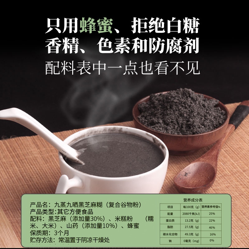 Black sesame Add quantity (30%) rice cake powder (glutinous rice rice) yam (added quantity 10%) honey
