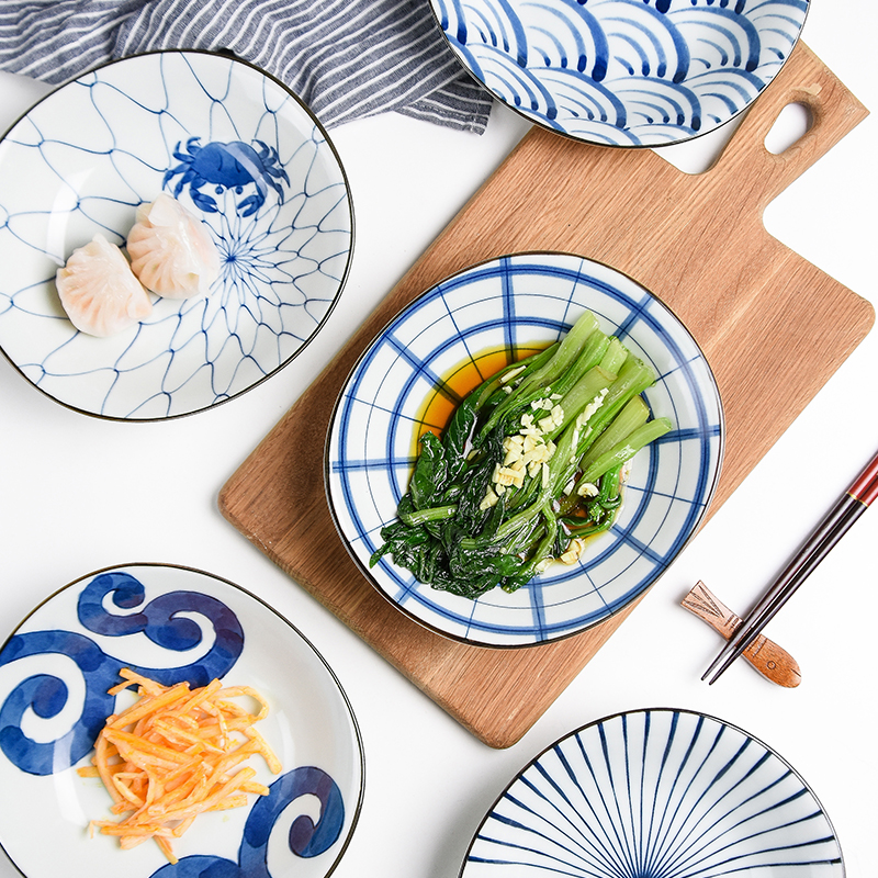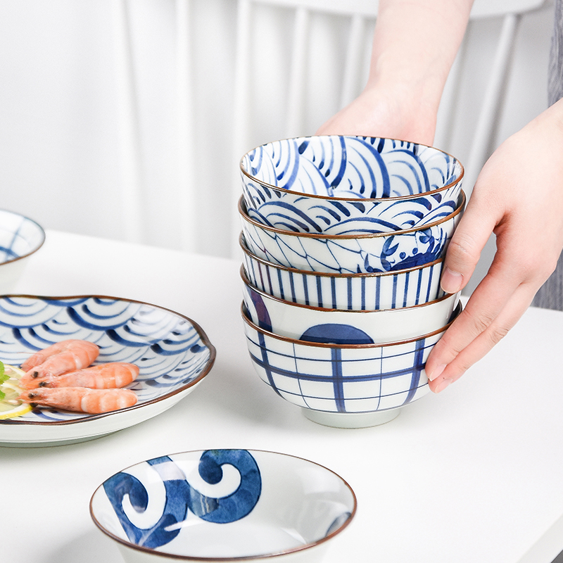 Hasami-yaki Japanese imported ceramic tableware set bowl plate Household blue painting and dyeing net red tableware ins set