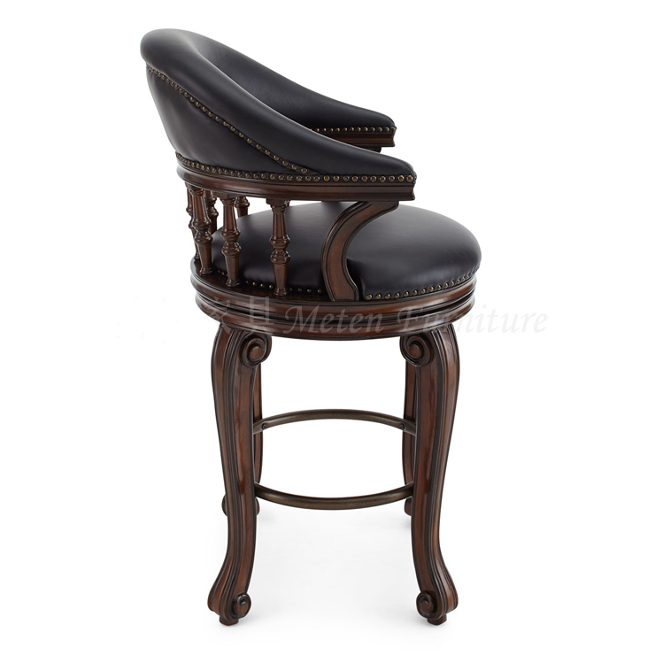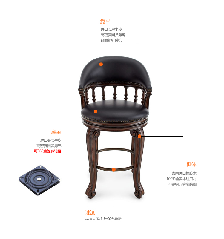 American bar chair European style solid wood Chair Genuine Leather Bar Chair Retro Swivel Foreground Bar Chair Solid Wood High Foot Chair Bar Chair