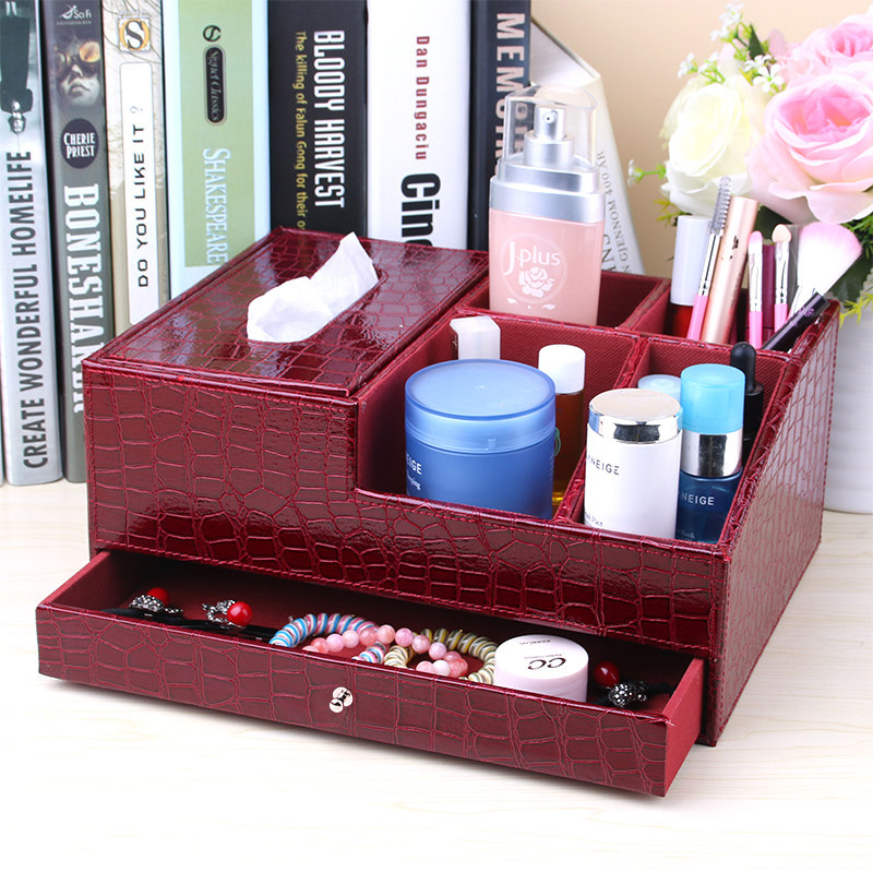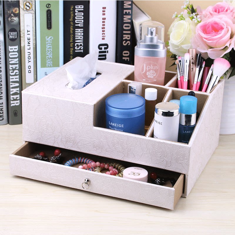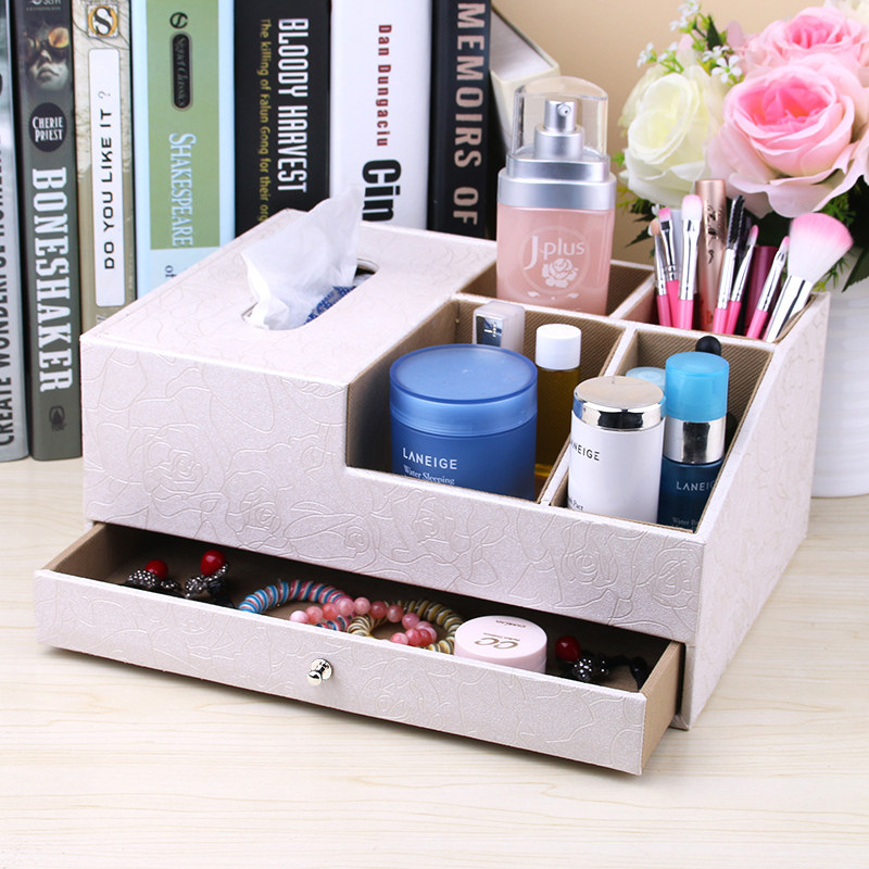Simple leather tissue box Paper box Desktop living room remote control box Cosmetics storage box Skin care products finishing box