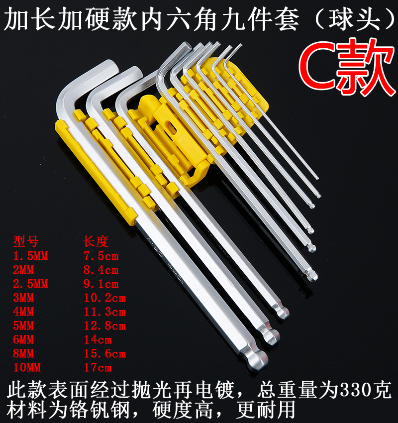 C Subsection Lengthened plus Hard Section (with ball head) B Inner Hexagon (Short) A Inner Hexagon (with key buckle)