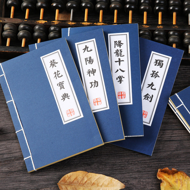 Customizable large number A4 crossline inner page dress Ben retro martial arts Benvoulin Kung Fu Notebook Ancient Book Shooting Props Funny Fun Student Hands Account of the book Japanese