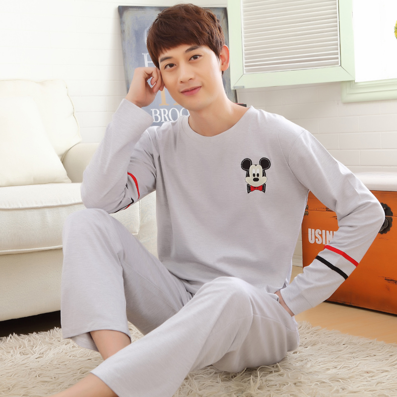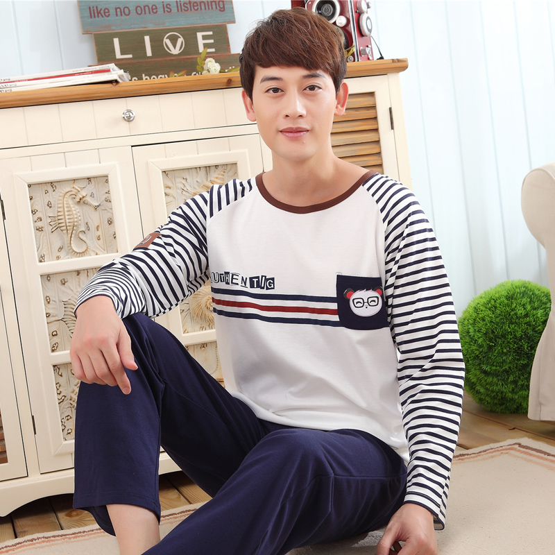 Autumn men's pajamas long-sleeved pure cotton plus size autumn cartoon casual home service youth regular suit