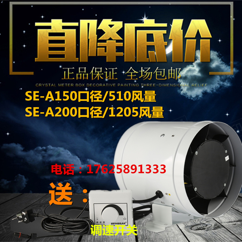 Stepless frequency conversion speed regulation pipe fan household commercial hotel kitchen exhaust fan ventilation fan 8 inches 200mm
