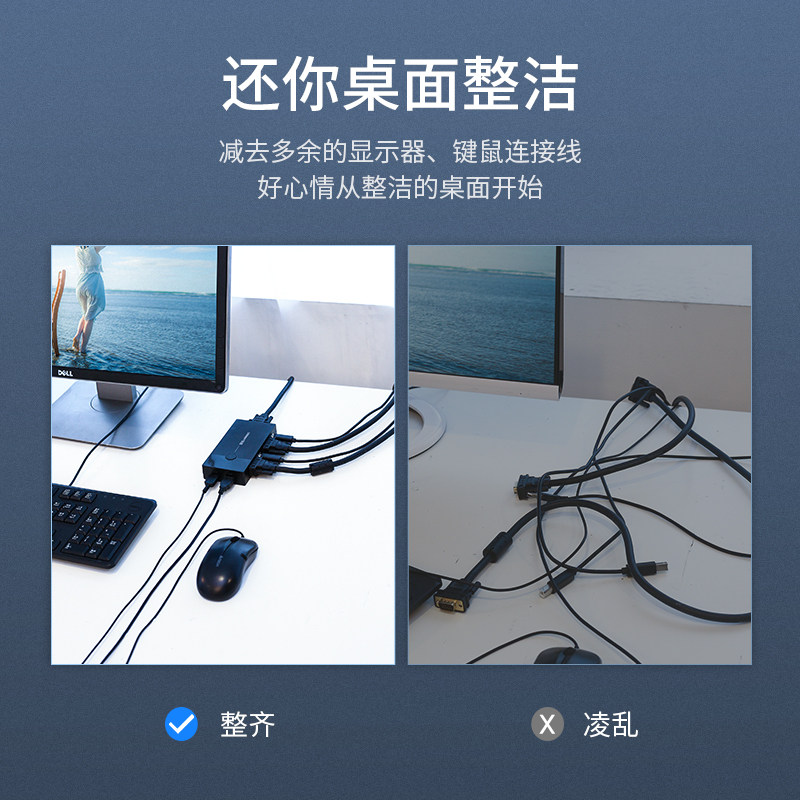 Green union KVM switch VGA2 port display video computer screen converter one drag two two host keyboard and mouse sharing sharer synchronous usb expansion distributor two in one out