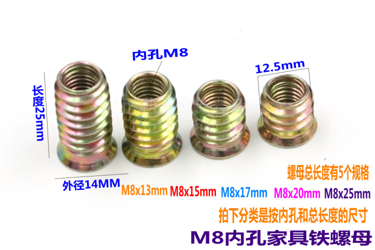 countersunk iron hexagon socket nut solid wood furniture embedded nut children's bed sofa nut M6M8M10