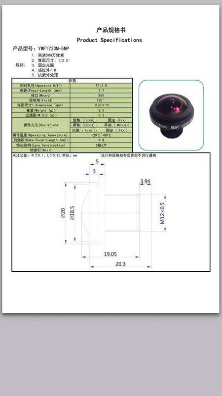 Fisheye lens 180 degrees panoramic professional super wide angle 5 million 1 7MM VR dedicated M12 360 degrees