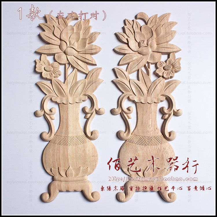 Dongyang wood carving European-style solid wood floral applique patch carved furniture antique decoration overall cabinet vase flakes