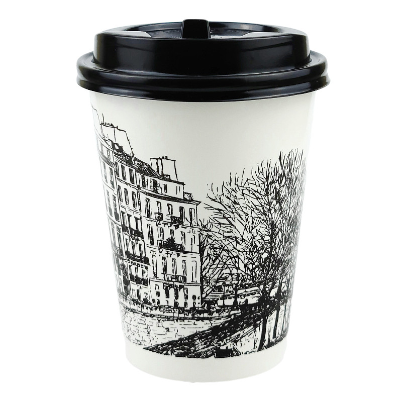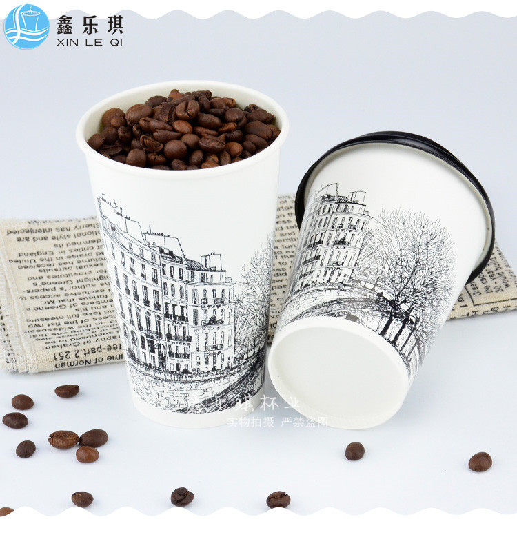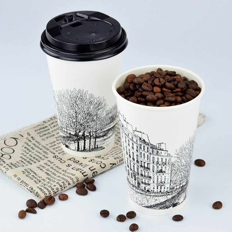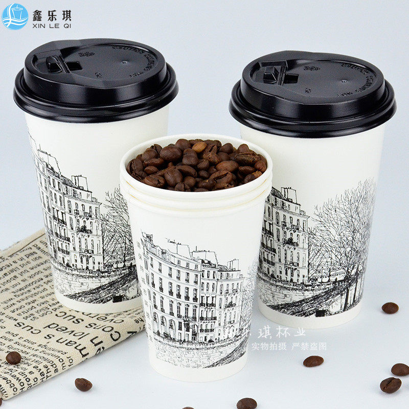 Disposable milk tea cup coffee paper cup juice hot and cold drink double film 500ml sketch Cup 700ml customization