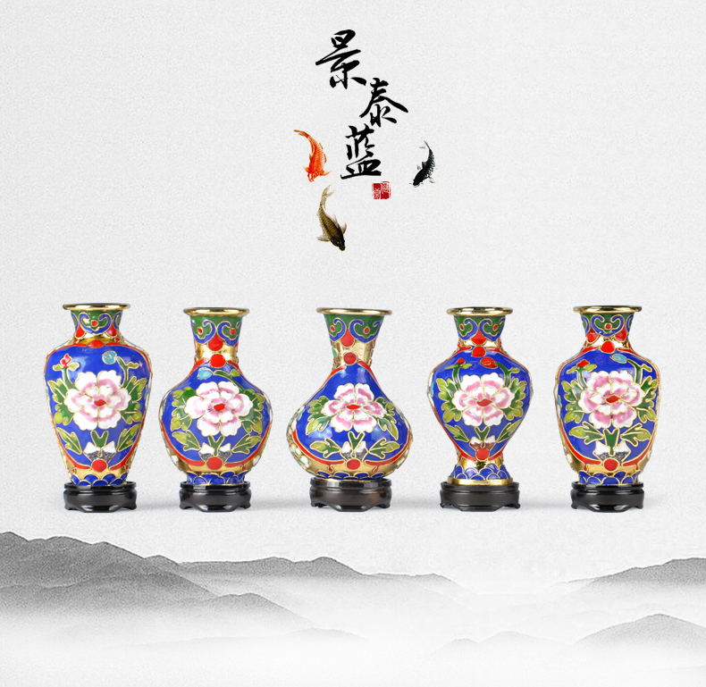 Jingtai Blue Vase Swing Piece Small Bottle Type Five Pieces Suit Composition Office Swing Piece Foreign Gift Business Craft Gift Hem Accessories