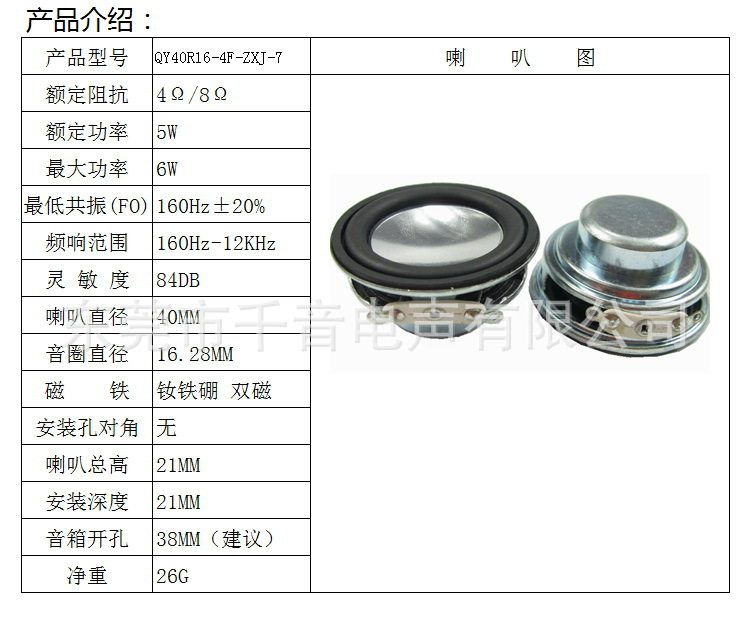 40mm4CM full frequency strong magnetic horn 4 Euro 8 Euro 3w5w tile speaker 1 5 inch neodymium magnetic double magnetic waterproof horn