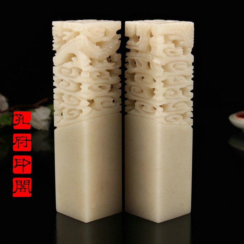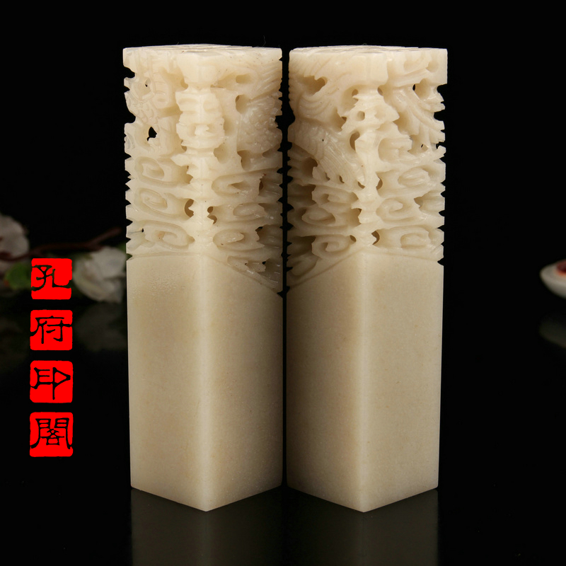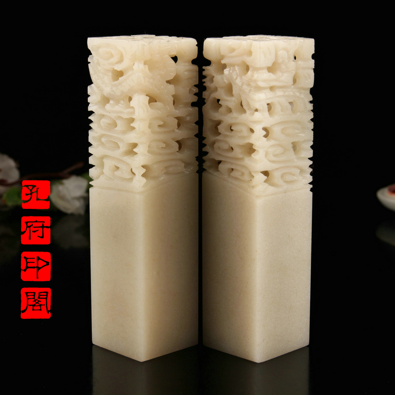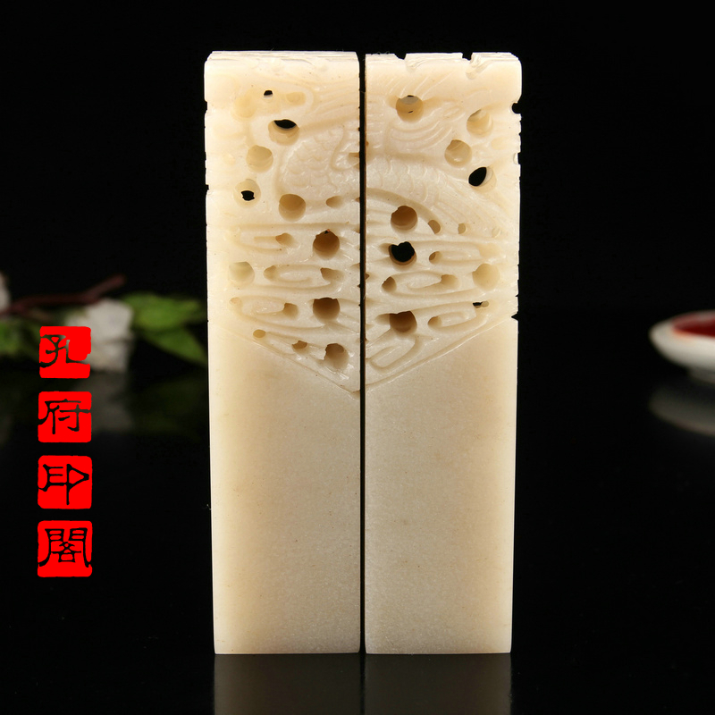 Natural Bahrain frozen stone Couple chapter Fine carving Dragon and Phoenix Seal carving Seal Leisure chapter Calligraphy painting Collection Name button