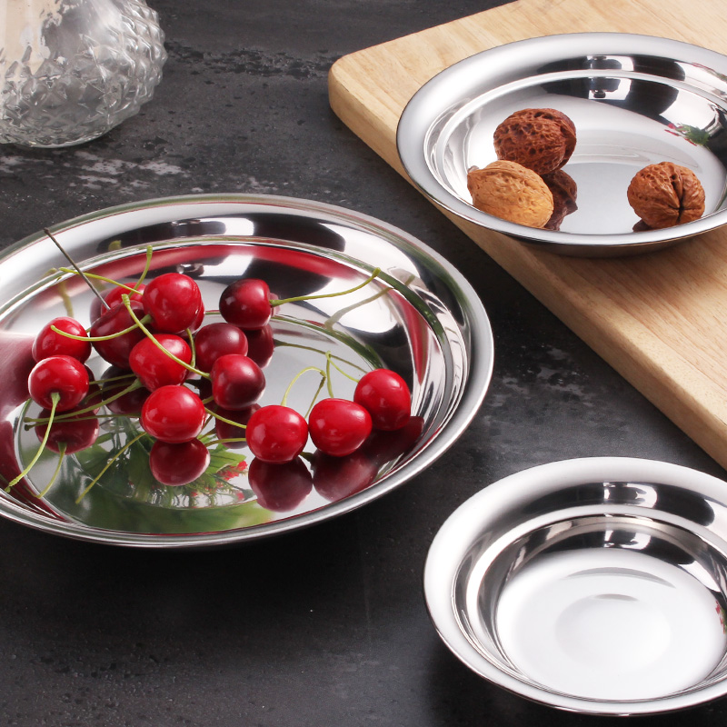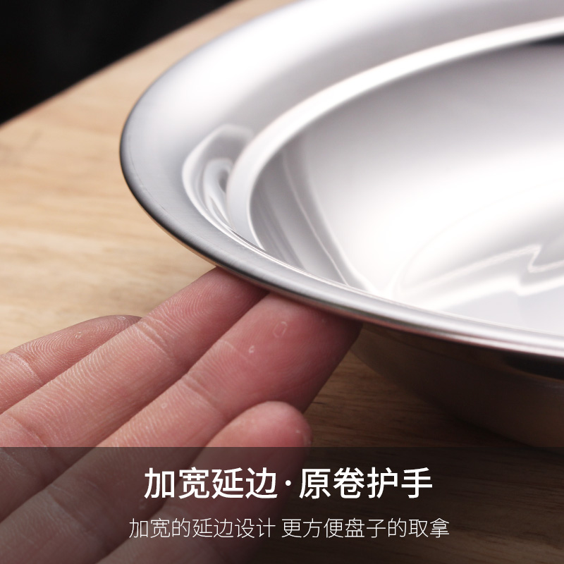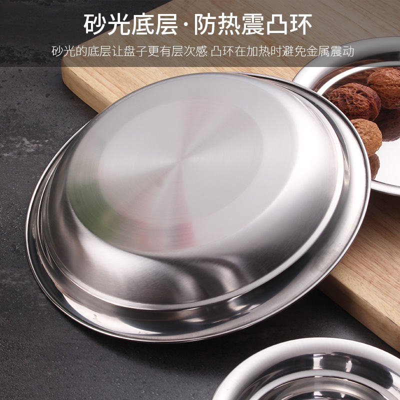 Stainless steel plate European thickened plate Fruit plate Large round soup plate Western tableware plate Small adjustment plate