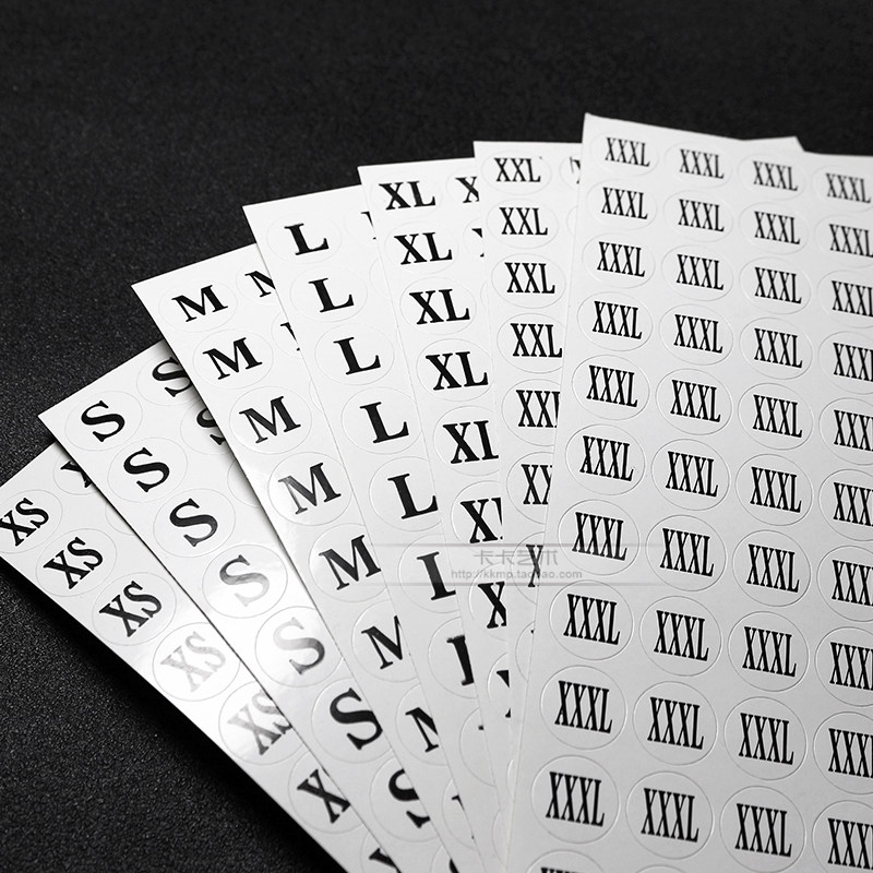 XS white size sticker ten sheets S white size sticker ten sheets M white size sticker ten sheets L white size sticker ten sheets of XL white size sticker ten sheets of 2XL white size sticker with ten 3XL of 3XL white size sticker