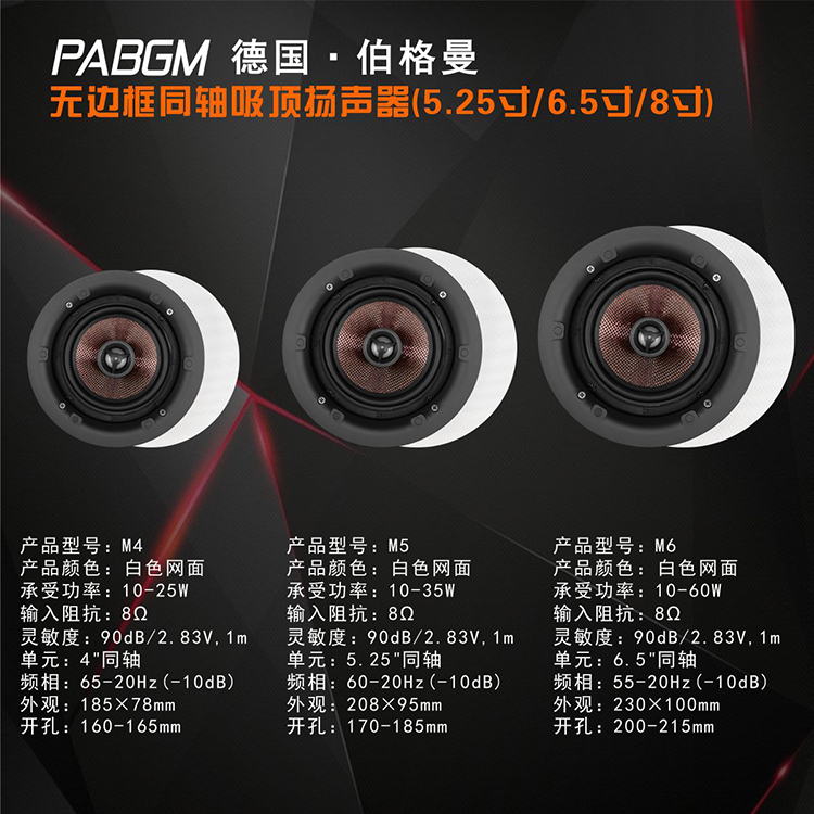 Embedded 6 5-inch high-fidelity bluetooth borderless coaxial ceiling speaker 5-inch background music 4-inch subwoofer