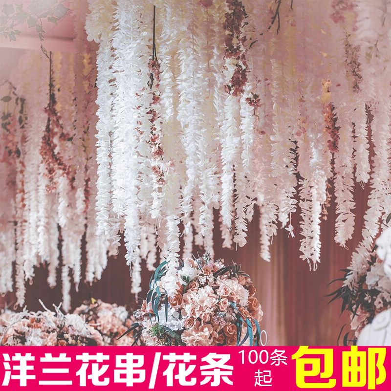 Simulation of Yanglan String Wedding Wisteria Strip Hydrangea String Wedding Wedding Auditorium Hanging Ceiling Decoration Arrangement Yanglan String