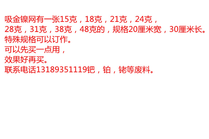 Nickel - suction Nickel Net Suction Net Recovery Gold - absorption material price by kg