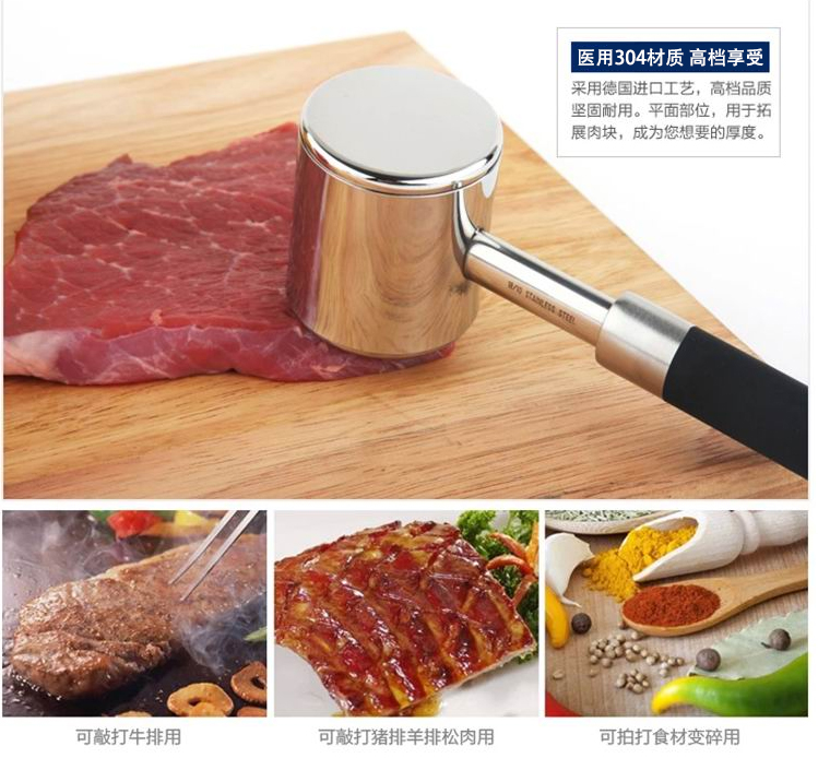 Export Germany high-grade 304 stainless steel meat hammer tool Beef hammer Steak hammer loose meat hammer Knock meat hammer Tender meat hammer