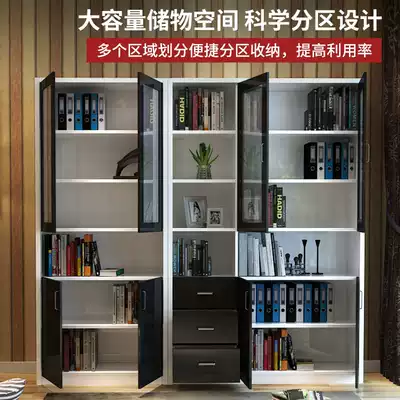 Simple study children's bookcase storage cabinet integrated modern paint floor-to-ceiling bookcase with glass door filing cabinet