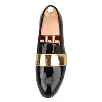 New European and American catwalk gold patent leather horizontal belt men's patent leather lofford shoes big brand same trend fashion low-top shoes