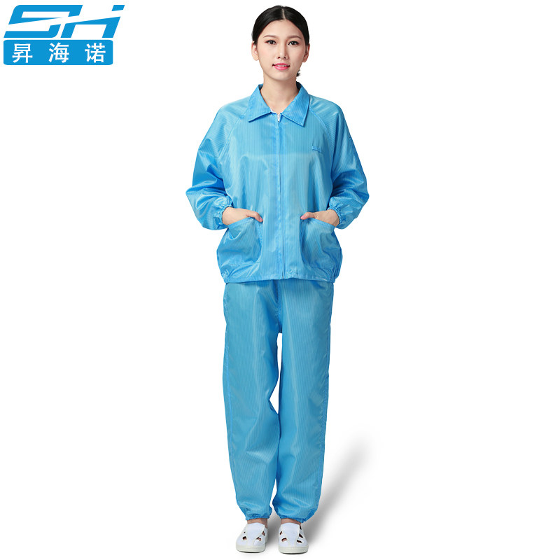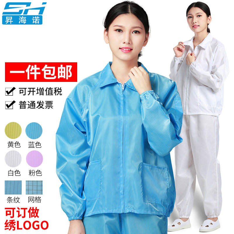 Electrostatic clothes jacket work clothes dust suit split set dust-free clothing blue and white protective isolation clean work clothes