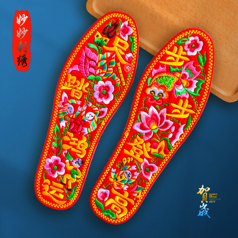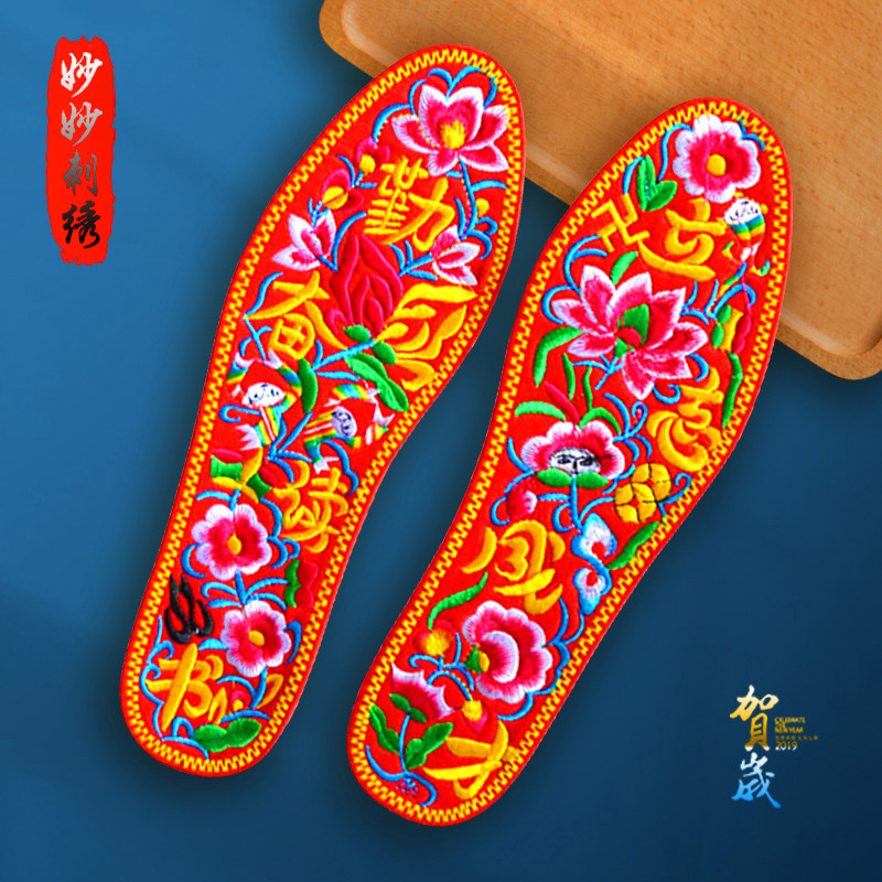 New cotton fabric embroidered insole breathable suction sweats Deodorant Wedding with this life embroidery finished product Men and women embroidered-Taobao