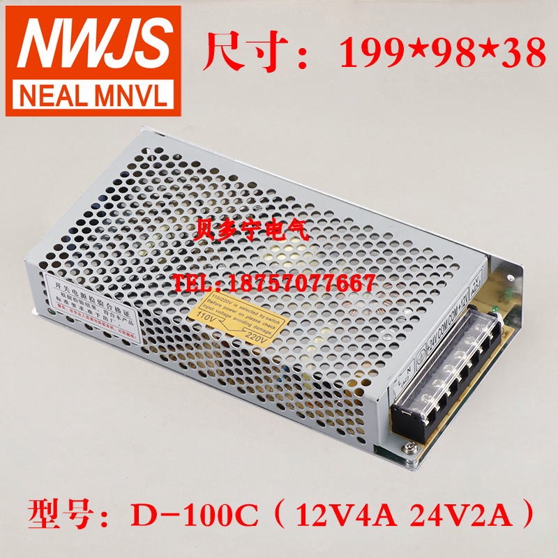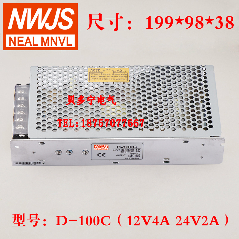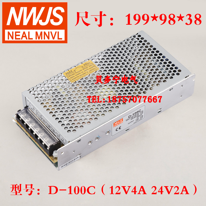 Mingwei dual output 12V4A24V2A switching power supply D-100C dual output warranty for two years