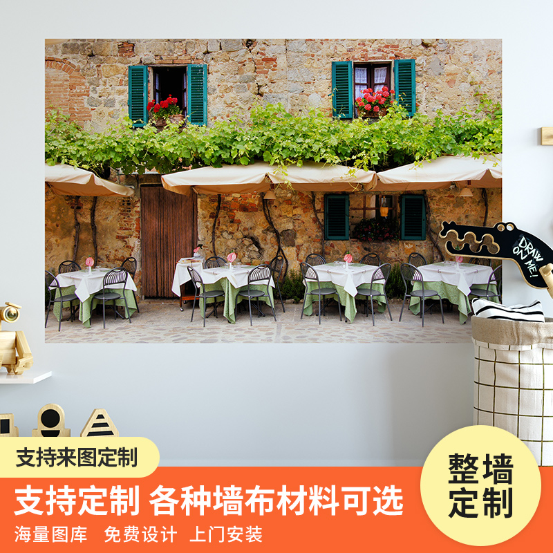 Self-adhesive 3d Cubic wall paste European-style small town Living room Sofa Background Wall Mural Hotel Net Café custom stickup