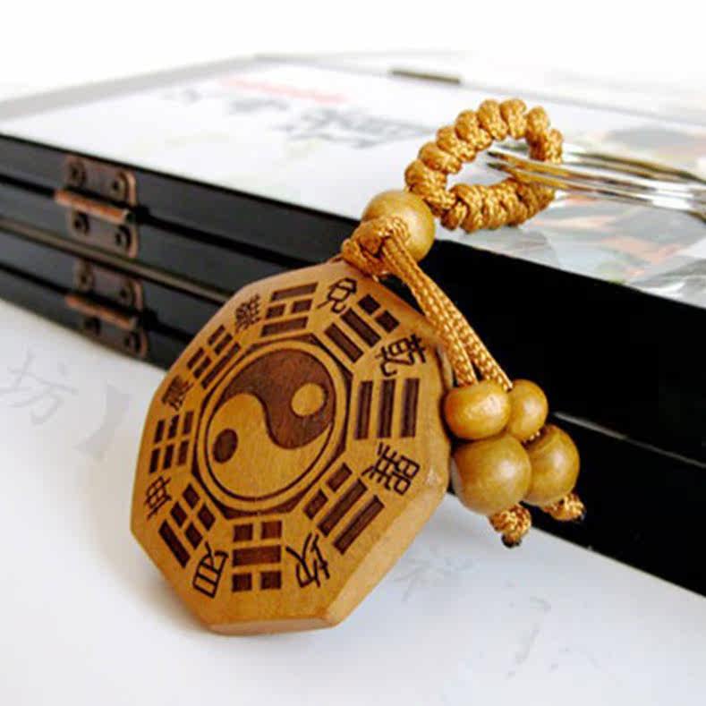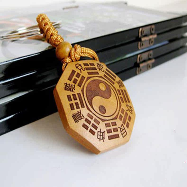 Peach Wood Yin & Yang Tai Chi 8 Divination Tutu Car Key Buckle Bag Pendant Necklace Pendant Male And Female Auspicious Couple Gift