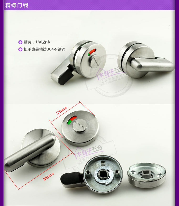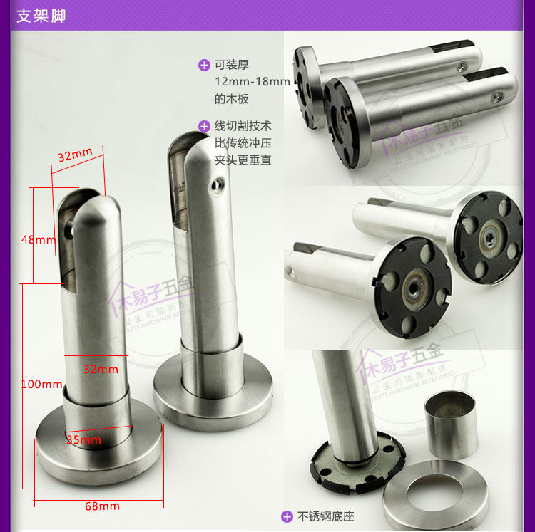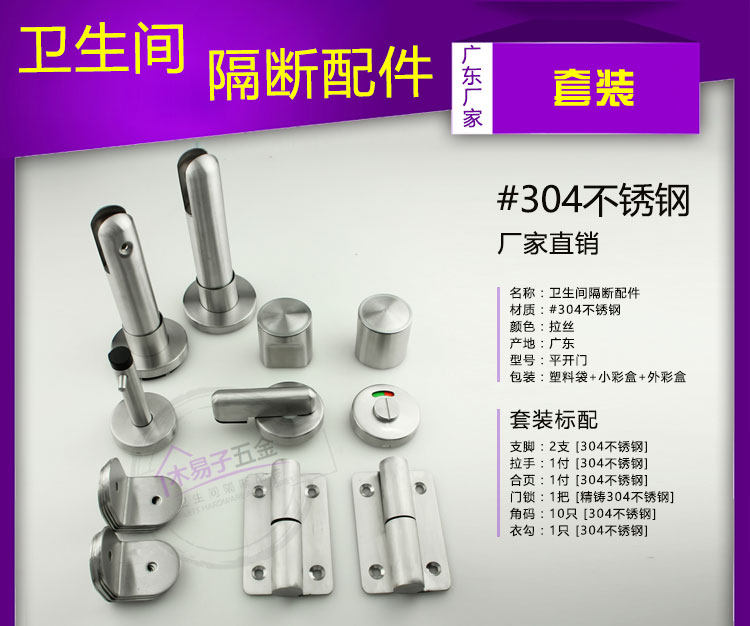 Public toilet powder room partition hardware accessories lock hinge support corner code handle 304 stainless steel set