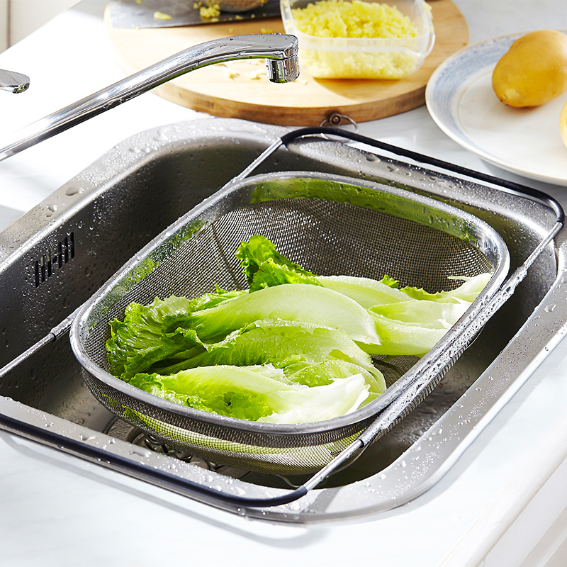 Retractable 304 high-grade stainless steel drain basket High-end kitchen chopstick rack Amoy rice basket vegetable basket drain basket