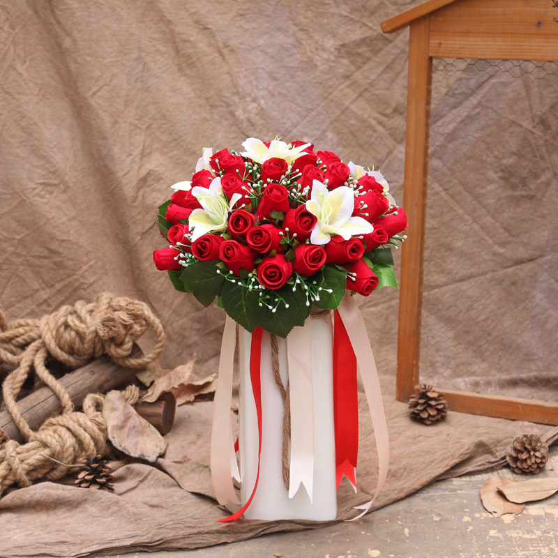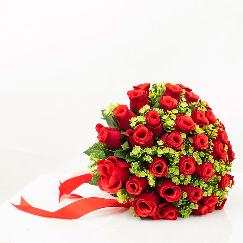 Korean bride bouquet wedding silk satin forever flower simulation Red Rose Photography wedding bouquet high-end