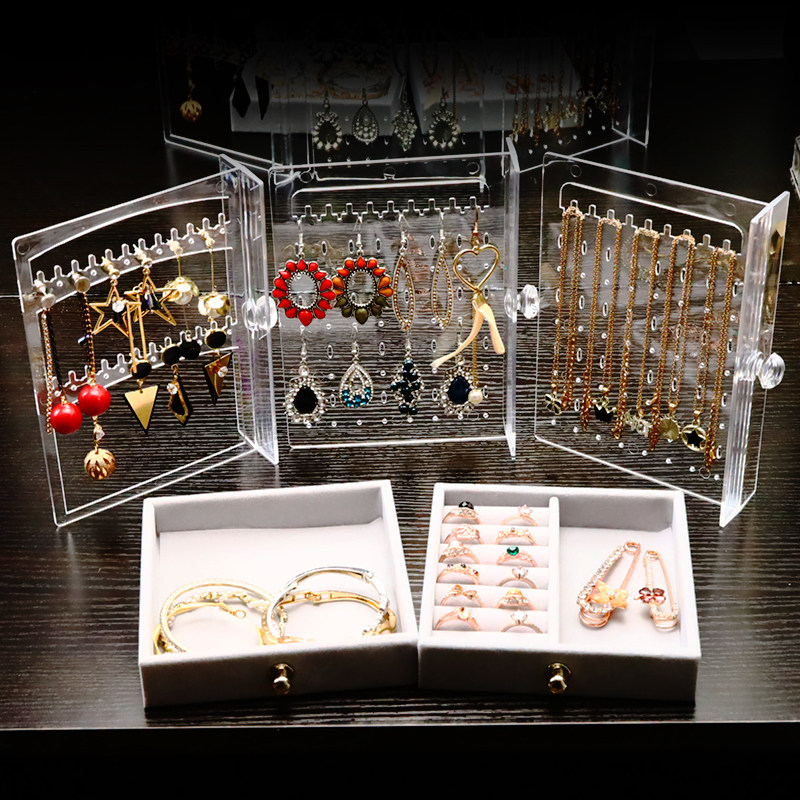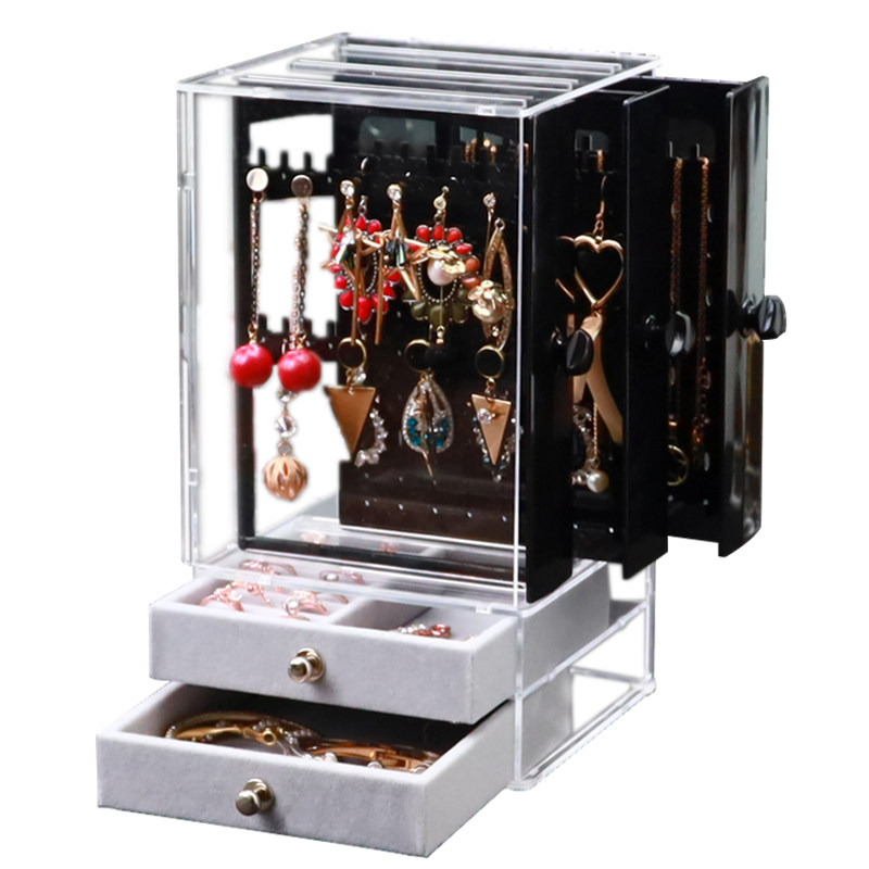 Comprehensive new 5 layers of transparent earrings frame beige triple drawing first decorated box front five opening plus 2 suede box pumping transparent front five opening plus 2 suede box pumping inner black right open transparent plus 2 suede box drawer right opening inner black plus 2 suede box drawer