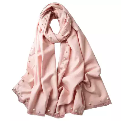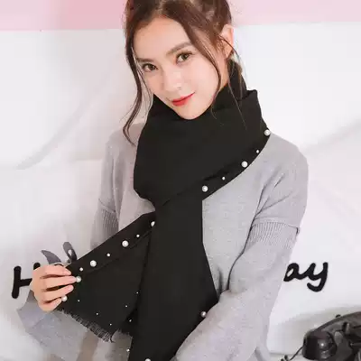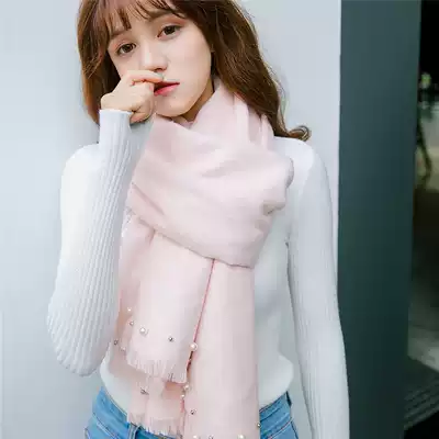 Peijin autumn and winter scarf women warm Pearl nail beads imitation cashmere tide shawl retro New Year gift box