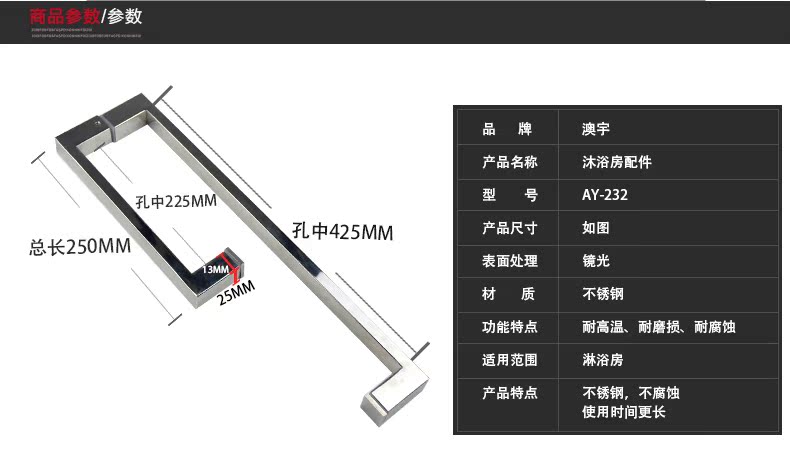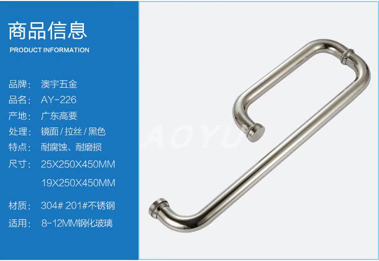 Round pipe square pipe 304 stainless steel bright light shower room accessories tempered glass door handle bathroom handle armrest