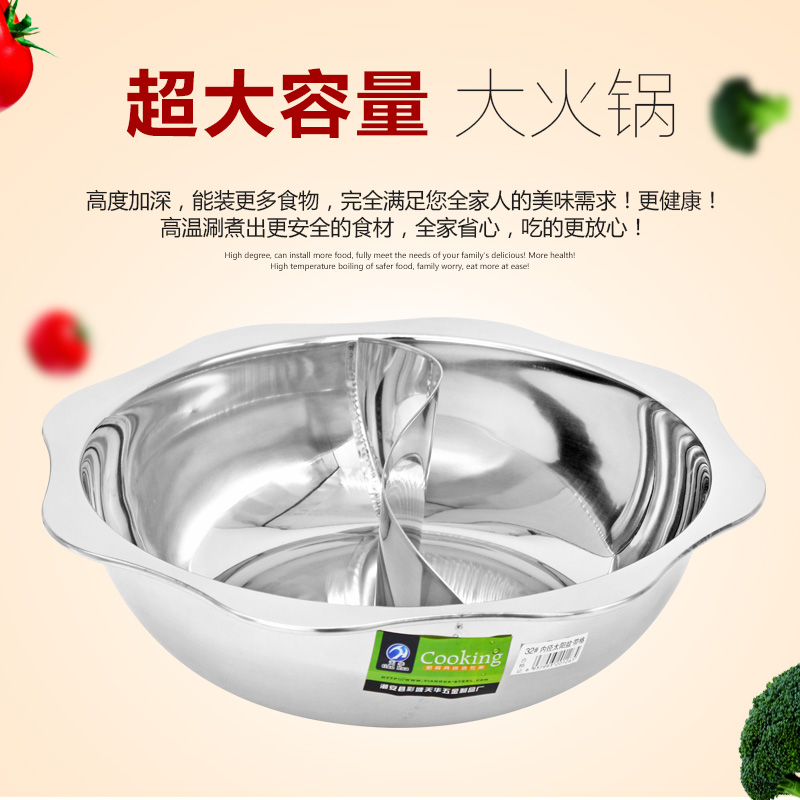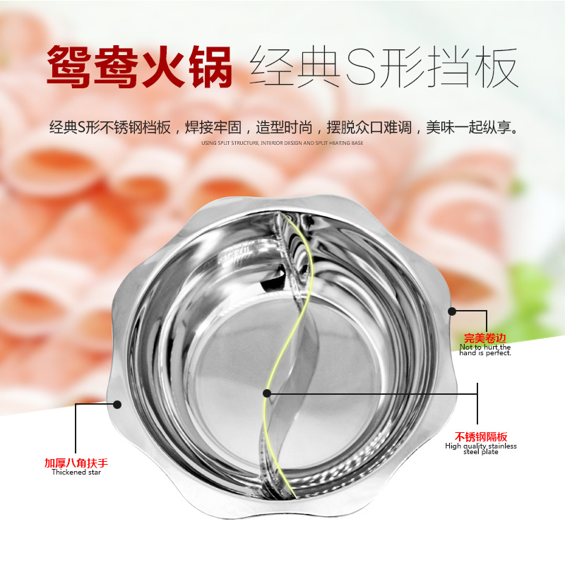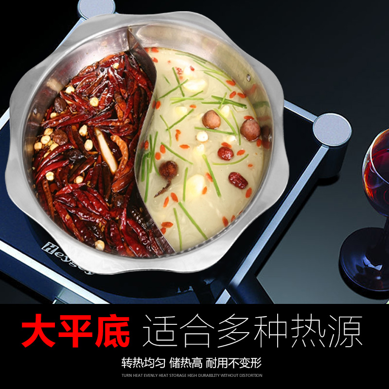 Thickened Yuanyang Clear Soup Hotpot Boiler special stainless steel anise pan Domestic hot pot pan Two-taste sun basin