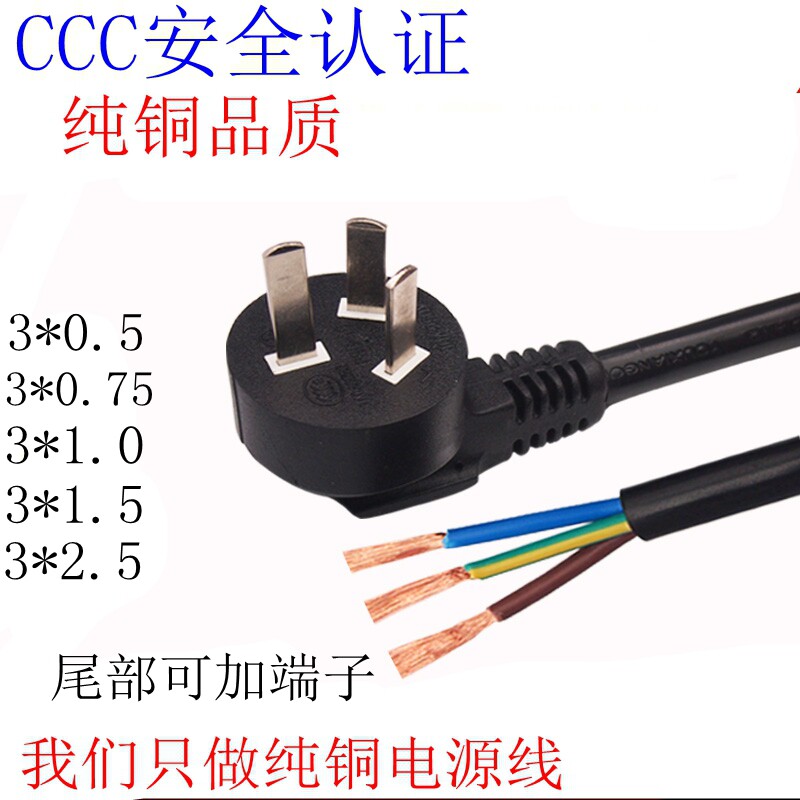 Pure copper national Label plug with line 3 Core 1 squared power cord 075 1 5 2 5 3 holes Single head nude tail 3 * 1 0