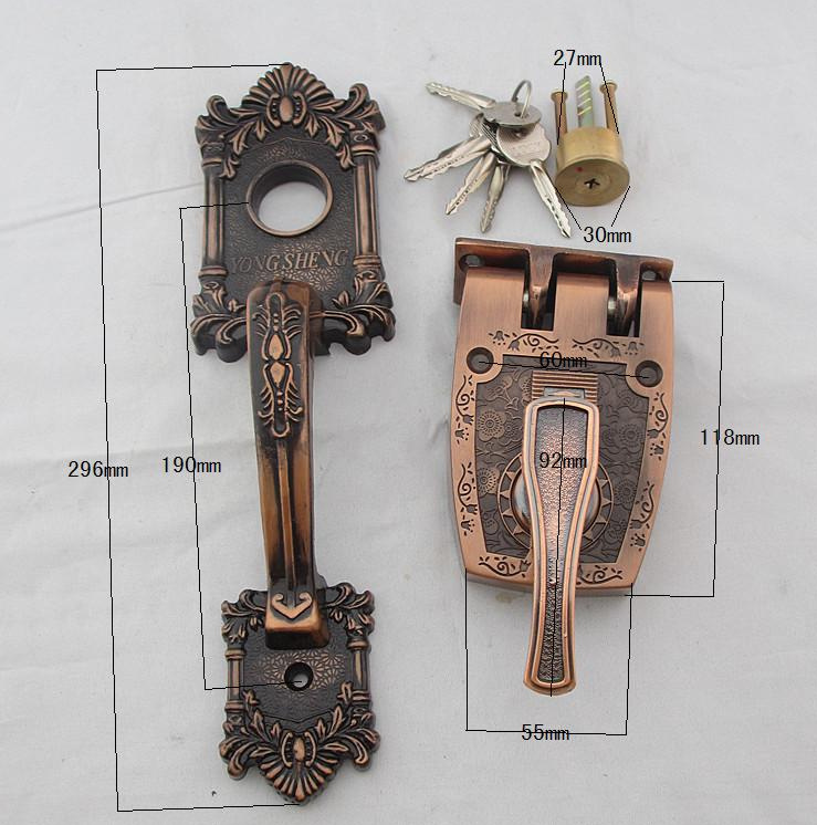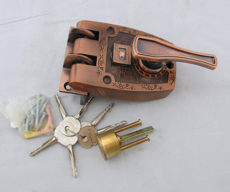 Tiger lock security door Old Tiger Teeth Door Lock Red Ancient Bronze Exterior Wood Door Large Door Lock Automatic Lock 935