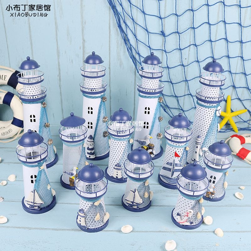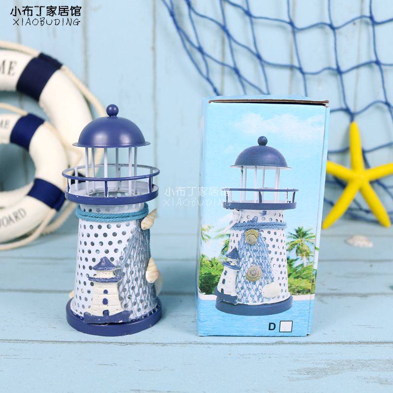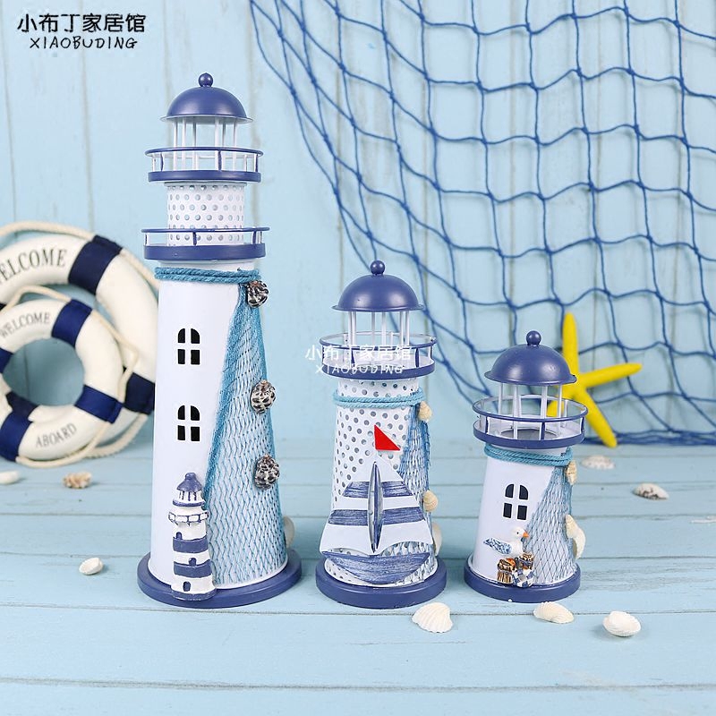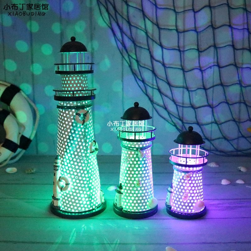 Mediterranean Iron Sheet Lighthouse Ocean Wind Electronic Lighthouse Swing Piece Creative Desktop Swing Piece Crafts Iron Lighthouse