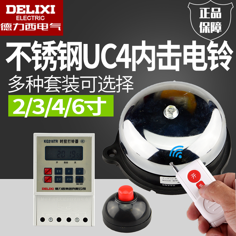 Delixi electric bell 4 inch uc4-100mm fire factory commuting school electric bell home 220v manual