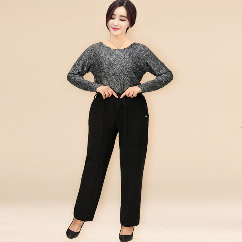 200 pounds of large size middle-aged women's pants spring and Autumn plus fat plus fat mother elastic high waist elastic casual pants