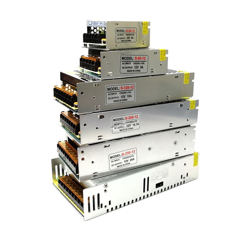 25W 2A (12v indoor switching power supply) 36W 3A (12v indoor switching power supply) 60W 5A (12v indoor switching power supply) 100W 8 3A