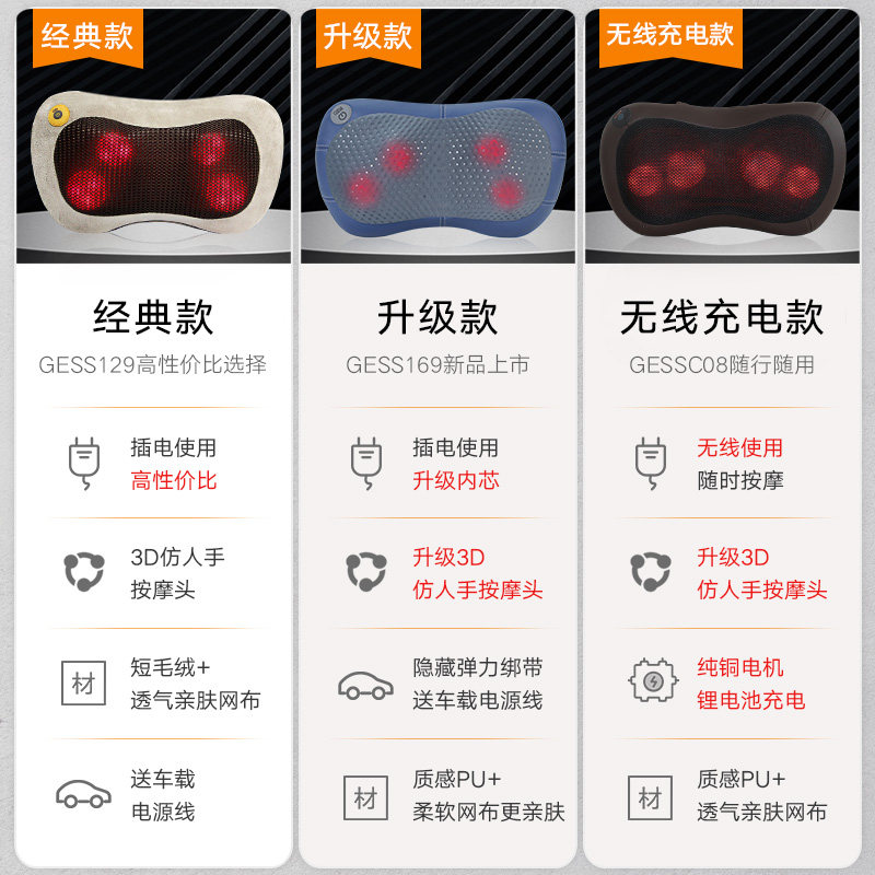 Germany GESS car cervical spine massager instrument shoulder neck waist massage pillow electric home kneading full body multifunctional